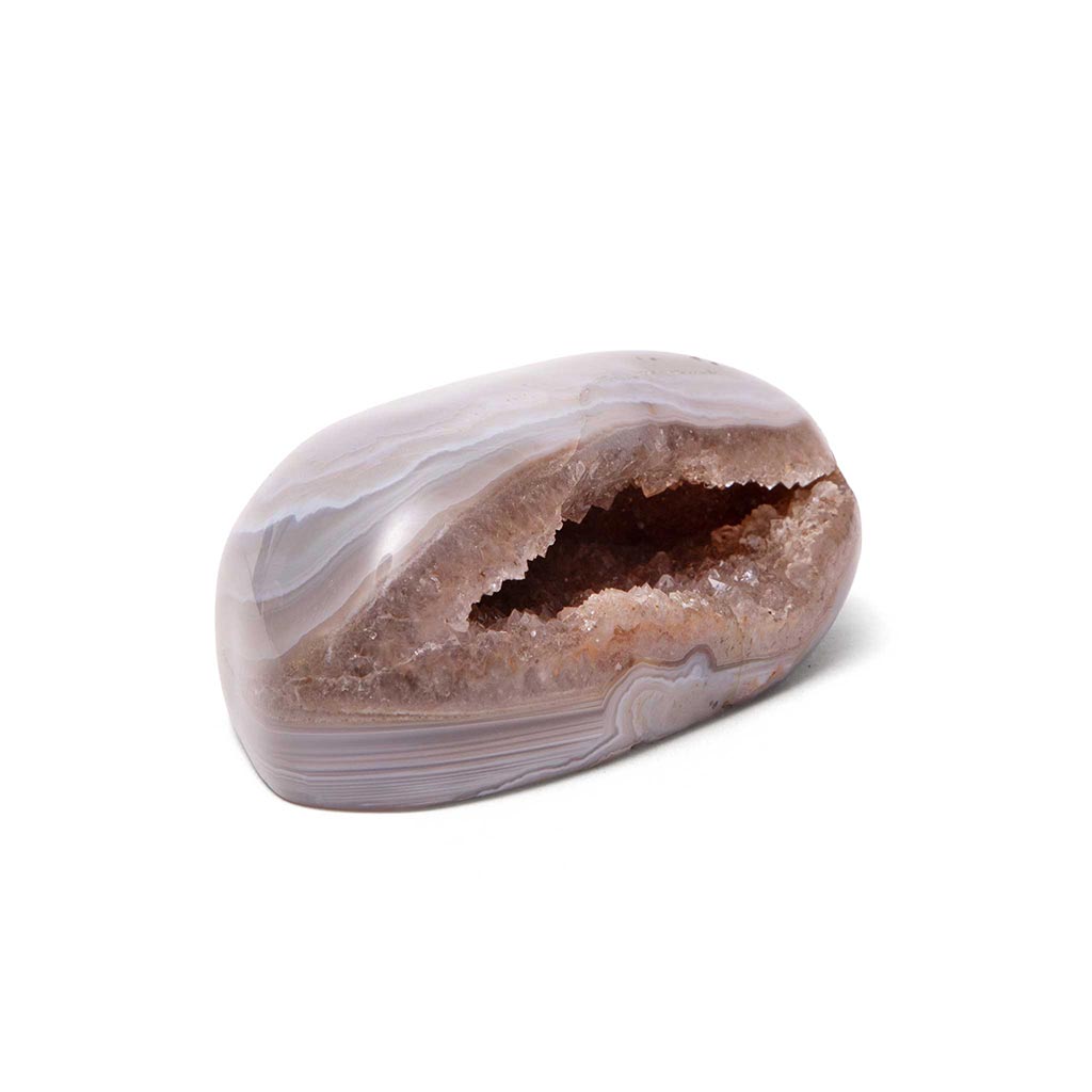 La ágata ayuda a calmar la mente, estabilizar emociones y promover la seguridad interior. Cada geoda es completamente única, con vetas naturales y cavidades cristalinas que la convierten no solo en una herramienta energética, sino también en un elemento decorativo lleno de carácter.